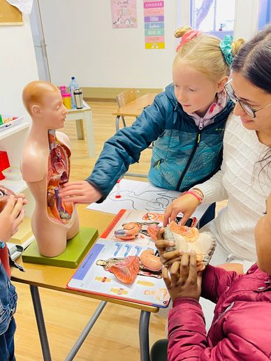 The children follow the International Cambridge Curriculum and use Montessori equipment to help lay solid foundations. The mixed age groupings allow the children to work together, and learn from and teach each other in this next step of their development.